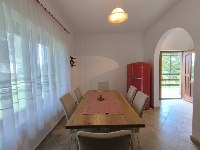 A ház tágas nappalija kellemes teret biztosít a családi együttlétekhez, míg a 12 négyzetméteres terasz és a 6 négyzetméteres erkély csodálatos kilátást kínál, lehetővé téve, hogy a nap végén a természet szépségeiben gyönyörködjön. Az ingatlan fűtése kettő kandallóval történik, amely nemcsak gazdaságos megoldás, hanem a vidéki élet varázsát is magában hordozza.