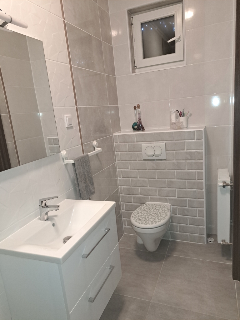 Az otthon melegét és a használati meleg vizet,korszerű Ariston 32 KW kondenzációs kazán biztosítja, a téli esték meghitt hangulatáról a médiafalba épített elektromos kandalló gondoskodik, a nyári melegben a kellemes hőmérsékletért egy 3,2 Kw inverteres .klíma felel.