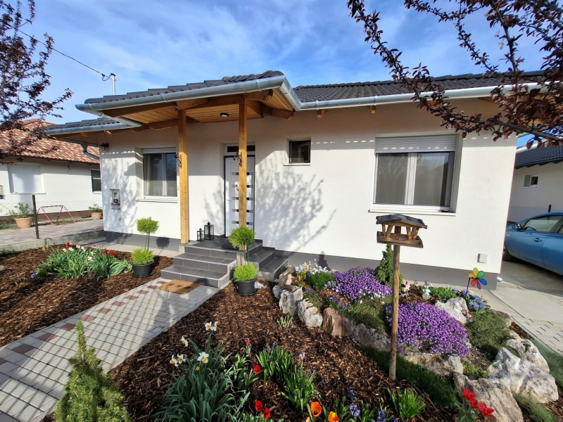 Vasalt beton alapra, Porotherm tégla falazattal, antracit beton cserép fedéssel épült, elismert, kiváló referenciákkal rendelkező kivitelező által.