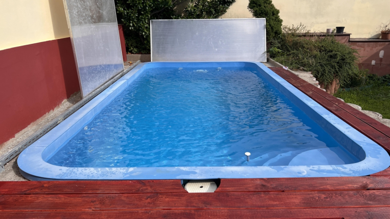 A kertbe rendelkezésünkre áll egy kút, amivel tudjuk a növényeket locsolni és a medencét is feltölteni.