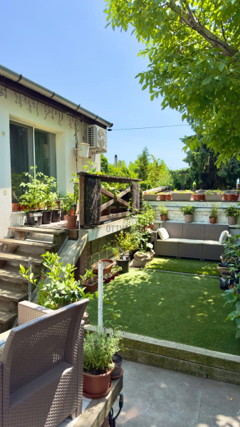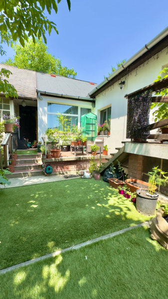 Budapest XXII. kerületében, Budafokon, az Árpád utcához közeli, csendes, családi házas övezetben eladó egy 70 m²-es ikerházfél, amelyhez saját használatú, 25 m²-es kert, valamint két külön bejáratú, összesen 40 m²-es pince és beépíthető padlás is tartozik.