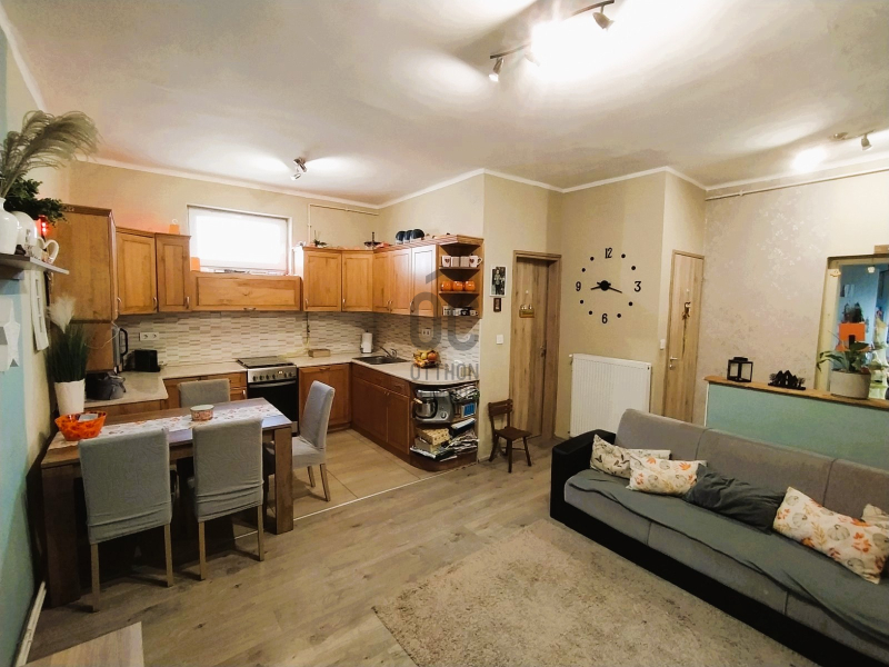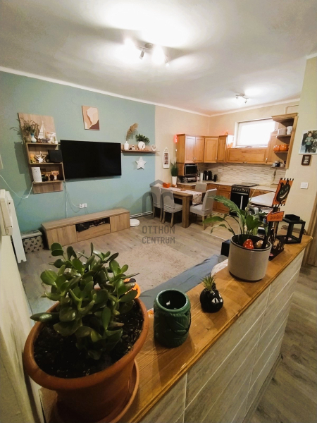 Helyiségek: Jól szeparált, de egy légterű az előszoba, nappali/konya/étkező, közlekedő. Két tágas hálószoba, fürdő, WC, tárolóként is funkcionáló padlásfeljáró a többi helyiségek. A bejárat előtt 8 m2-es fedett terasz.