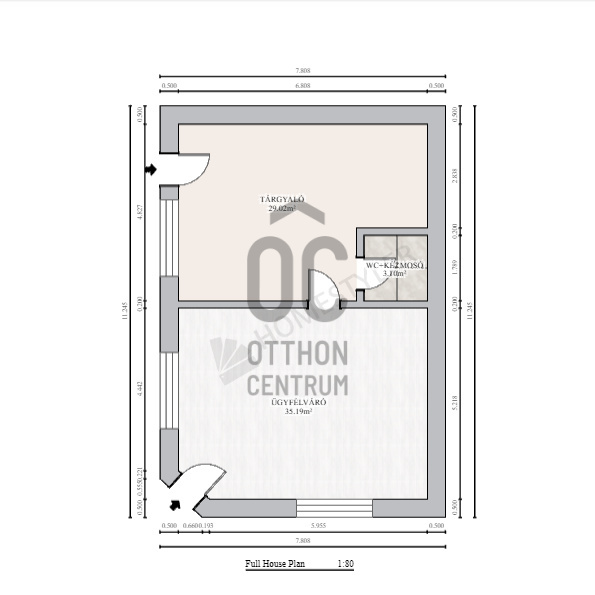 Az irodában egy ügyfélváró, egy belső tárgyaló konyha sarokkal valamint egy WC+kézmosó helyiség található.