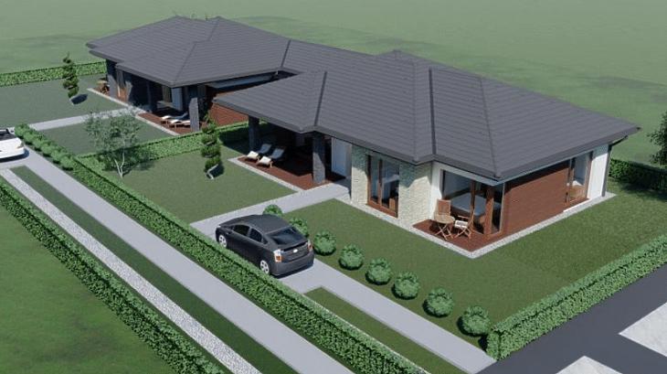 Amerikai konyhás nappali + étkező, 3 szoba, háztartási helyiség, fürdő+wc, előszoba, 2 db fedett terasz, nyárikonyha.