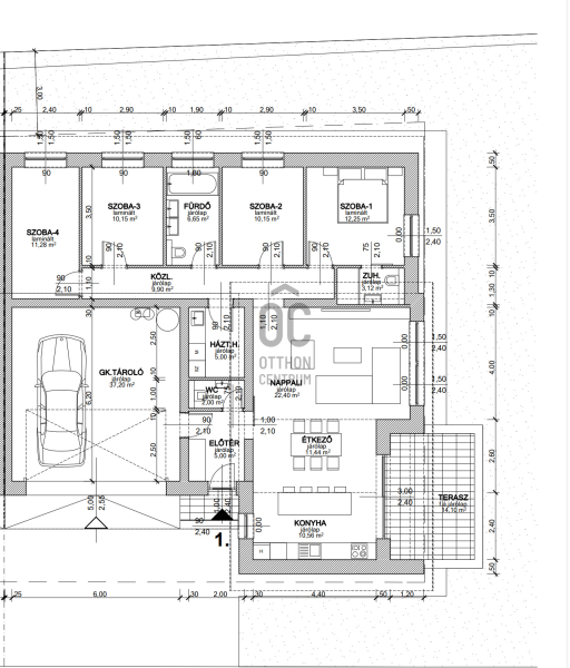 - Saját, kétállásos garázs, parkolási lehetőséggel több autó részére