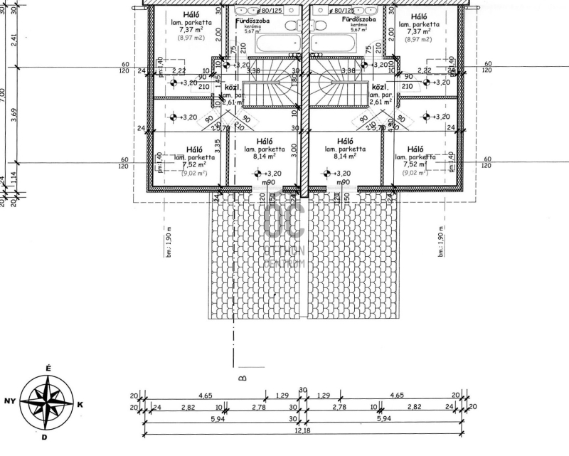 - nettó lakótér 76 m2 mely magában foglal 4 lakószobát, 2 fürdőszobát és nappalit külön