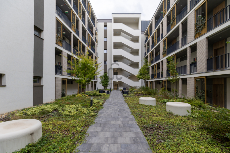 A 2025-ben átadott új építésű társasház modern építészeti megoldásokkal, elegáns megjelenéssel és korszerű műszaki tartalommal készült. A homlokzat letisztult, időtálló anyaghasználattal, a közös terek rendezettek és kimagasló minőségűek. A házban lift működik, a teremgarázs közvetlenül az épületből elérhető. Belső udvarunk egy valódi pihenőterületként szolgál a lakók számára. Modern építészeti elemek és a természet harmóniája találkozik: rendezett növényzet, örökzöldek és ízlésesen megtervezett burkolatok teszik hangulatossá.