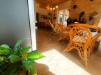 A műhely előtti rész térköves, a fatároló mellett egy hangulatos fedett szaletli került kialakításra.