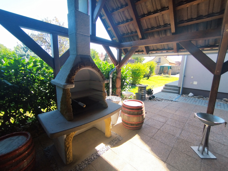 A parkosított kertben új grillező kapott helyet, a telek hátsó részében