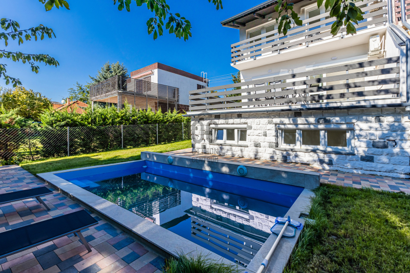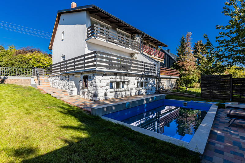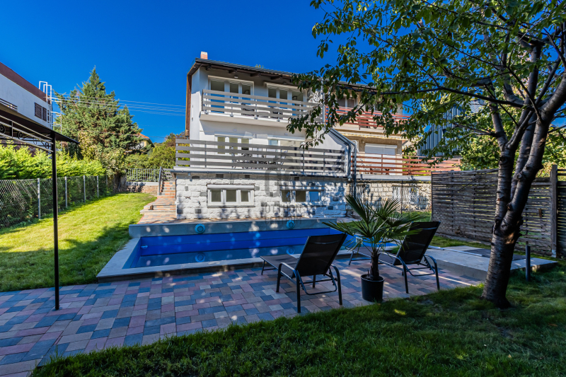 A rendezett kert és a medencés ház környezete ideális a szabadidő eltöltésére, legyen szó baráti összejövetelekről vagy családi programokról.