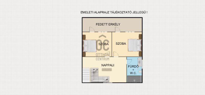- Emelet: nappali , 2 db hálószoba , fürdőszoba , erkély