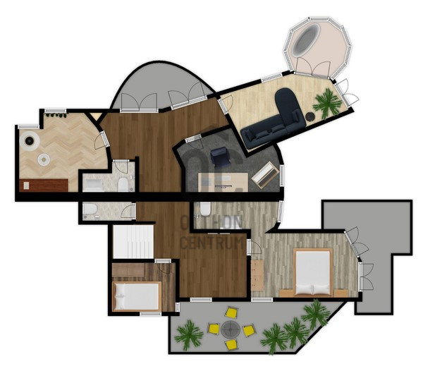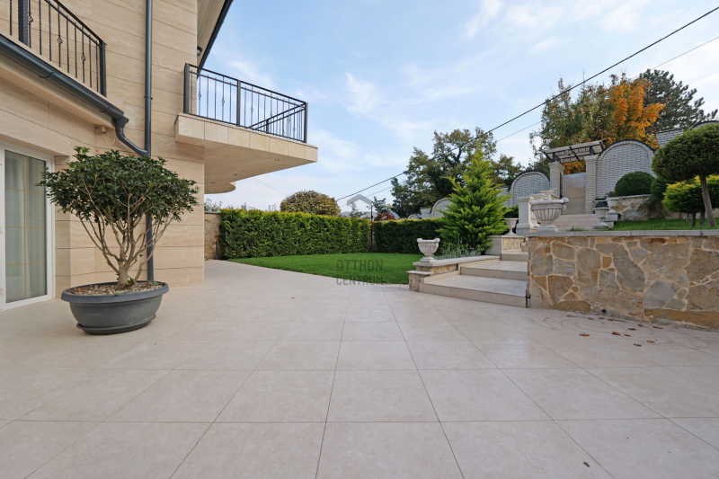 A lenyűgöző kertben az automata öntözőrendszer folyamatosan biztosítja a növények életerejét, az elvehetetlen panoráma pedig exkluzív látványt nyújt minden irányból. A szabadidő eltöltésére a szauna, partyhelyiség és a medencék nyújtanak lehetőséget.
