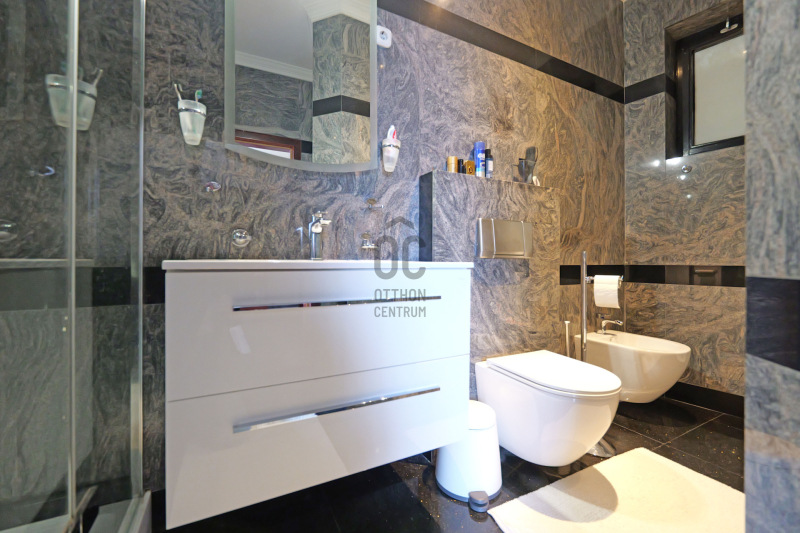 A ház kiváló, azonnal költözhető állapotban várja új lakóit, modern hőszivattyús fűtéssel és klímával felszerelve, hogy az év minden szakaszában kellemes hőmérsékletet biztosítson. Az ingatlan belső tereit tágas terek uralják, ideális helyszín a családi összejövetelekhez és reprezentáláshoz. Az ingatlan elegáns stílusú kialakítása, a beépített bútorok és szekrények, valamint a LED hangulatvilágítás \\\" old money\\\" eleganciát és stílust kölcsönöznek a tereknek. A házban található 5 fürdőszoba garantálja a kényelmet és a magánszférát minden családtag számára.