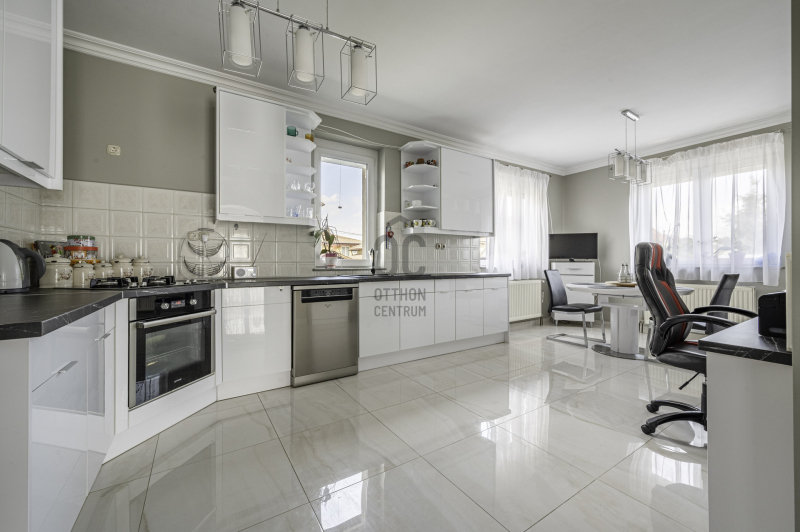 XVIII. Glóriett telepen eladó egy 6 szobás, 2 fürdőszobás,4 wc-és, luxus színvonalú sok-sok extrával rendelkező kétszintes családi ház+ beépített alsószinttel. Alapterülete 120 m2 három szinten, a telek 450 m2.