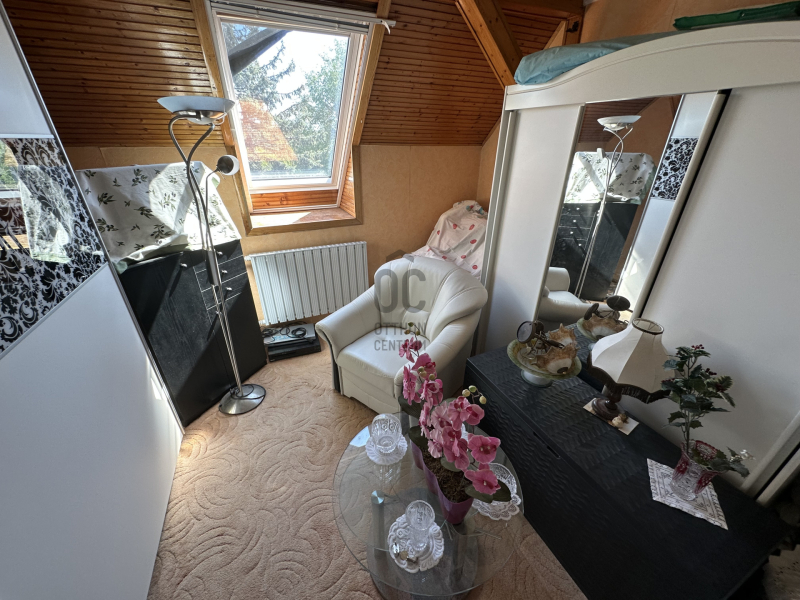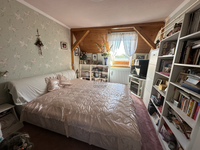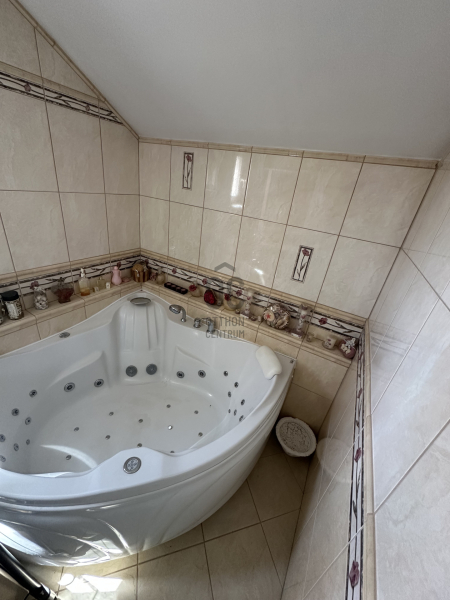 - Az emeleten tágas, hidromasszázs funkcióval ellátott sarokkádas fürdőszoba került kialakításra