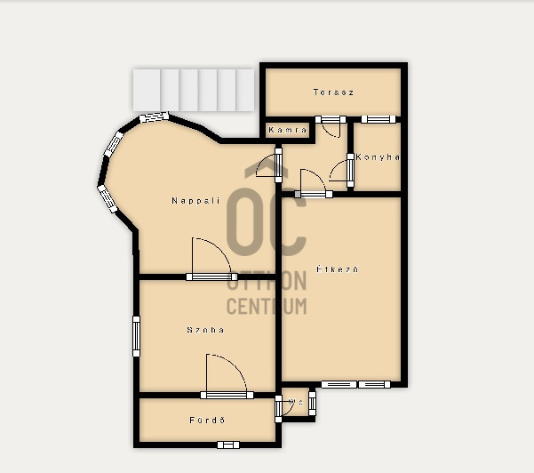 A jelenlegi elrendezés szerint a lakótérben három nagyméretű szoba, konyha és fürdőszoba található. A helyiségek elrendezése és mérete lehetővé teszi egy igényes, korszerű otthon kialakítását, miközben az épület megőrzi eredeti nagypolgári hangulatát.