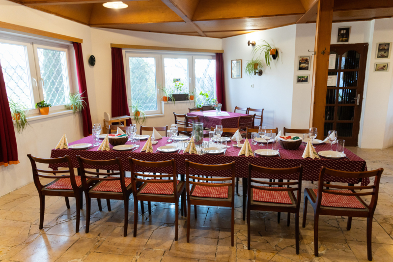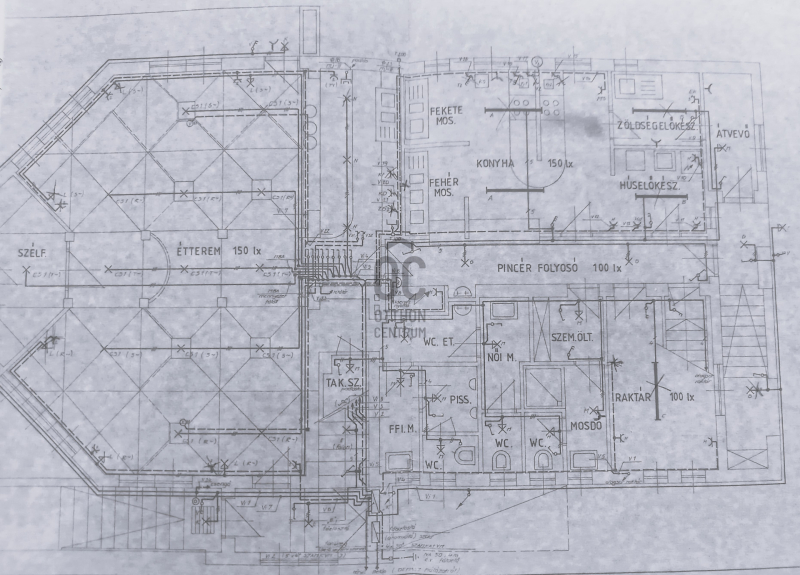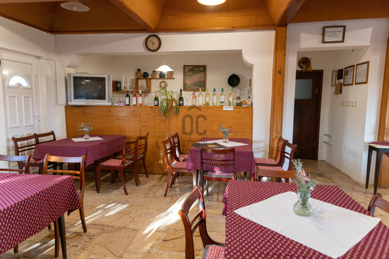 -Földszinten: max. 60 fő befogadására alkalmas étterem, bárpult, felszerelt konyha (50 adagos), előkészítők, raktárak, személyzeti öltözők, vendégmosdók.