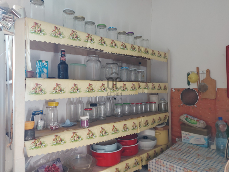 Az ingatlanban található a három szoba mellett egy előszoba, kamra, konyha, egy fürdőszoba és egy kis tároló amiben megtalálható a padlás feljáró is.