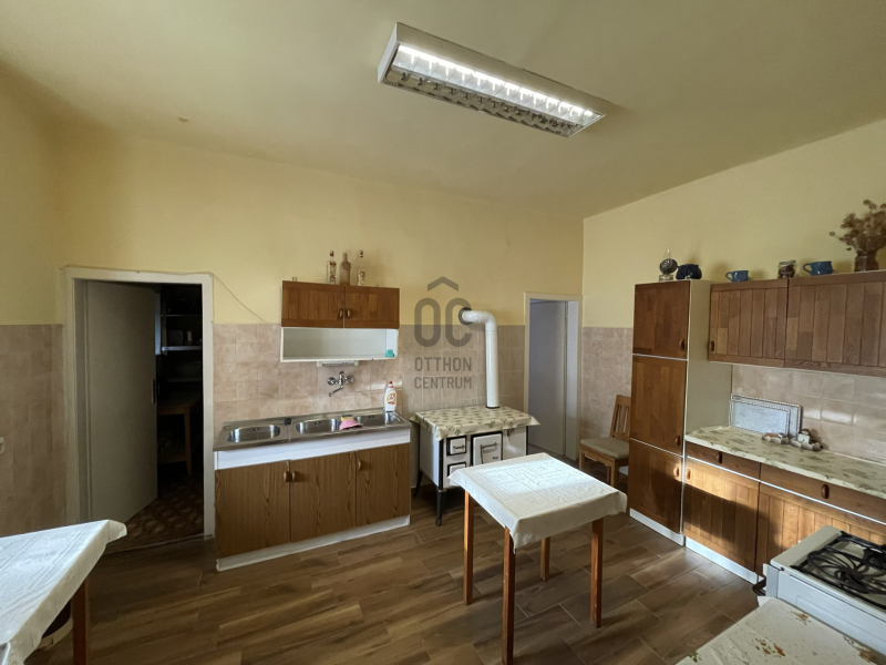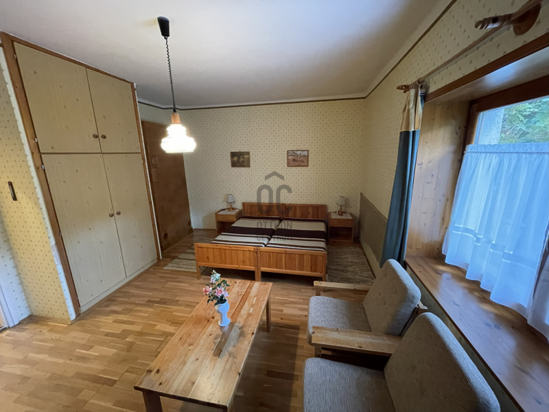 Ebben a környezetben vált eladóvá ez az apartmanház, mely kisebb átalakítása, modernizálása után kiválóan hasznosítható, kiadható. A terület hatalmas és gyönyörű környezetben van, távol a város zajától. Három szoba, mindhárom szobához külön fürdőszoba,egy nagy közösségi tér, előtér, konyha alkotja. Fűtése cserépkályhával megoldott. Nyílászárói jó állapotú fa szerkezetűek. A szobák, közösségi terek burkolata, külső fal, tető, megkímélt állapotúak.
