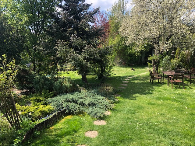 A gondozott, szabályos formájú kert teljesen privát, így akár medence, játszótér vagy konyhakert is kialakítható.