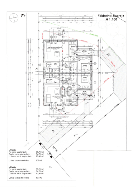 Az telek mérete 205 négyzetméteres a terasz 11,66 nm.