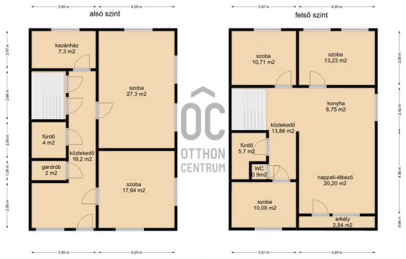 - A házban  az emeleti szinten nappali + 3 szoba található, amelyek mindegyike világos. A földszinten található két nagyobb méretű  helyiségből hobbi szobát, dolgozó szobát, házi