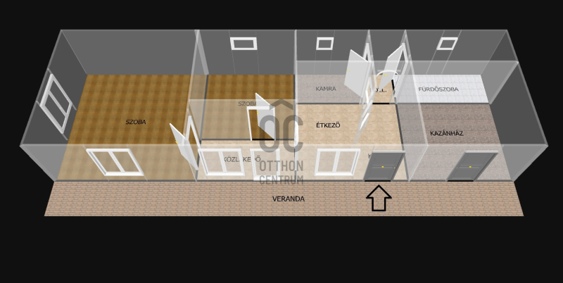 - 60,51 m2 hasznos lakótér (konyha+étkező, 2 szoba, fürdőszoba, közlekedő, kamra)