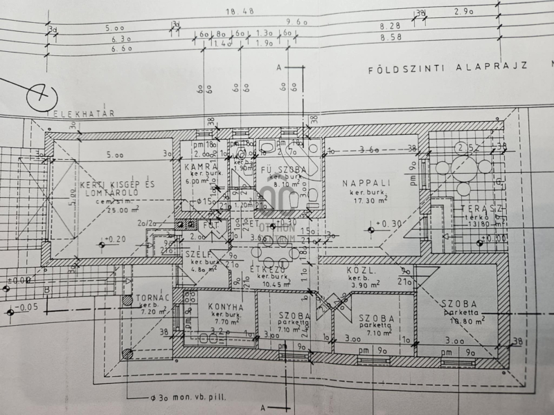 A telken 2 fúrt kút van, öntözőrendszer és csapdékvíz -tároló is megtalálható, így a kert gondozása egyszerű és takarékos.