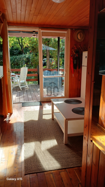 A hangulatos faház nagy teraszán keresztül juthatunk a nappali/konyha helységbe ahonnan az egyik kis hálószoba nyilik,