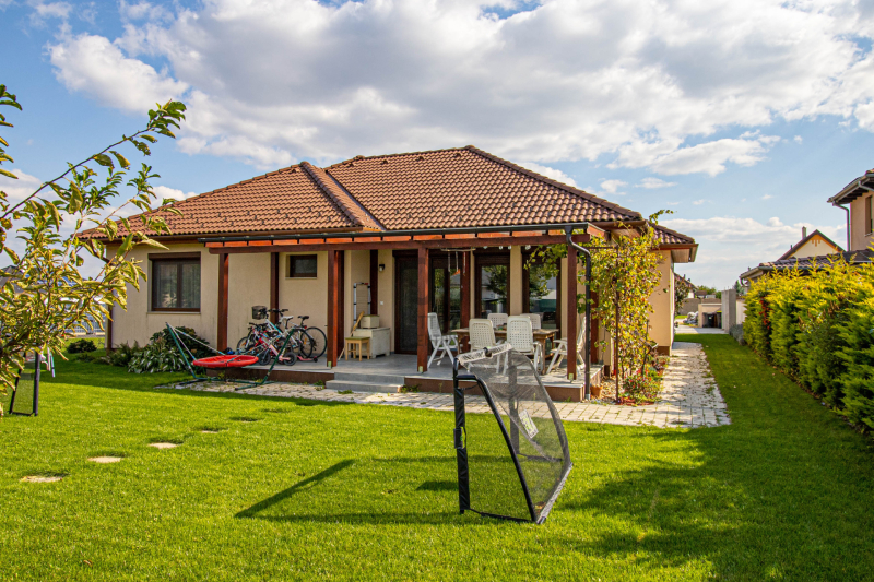 A ház műszaki tartalma korszerű: háromrétegű nyílászárók, alumínium redőnyök, mindenhol szúnyogháló, valamint gázcirkó fűtés padlófűtéssel és radiátorokkal biztosítja a kellemes hőérzetet egész évben. A gondozott kertben automata öntözőrendszer, konyhakert és kerti sütögető is helyet kapott.