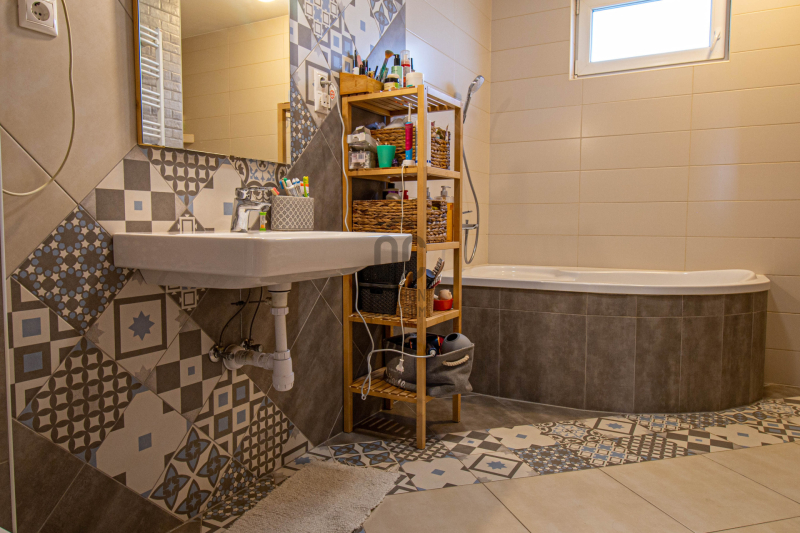fürdőszoba tusolóval és fürdőkáddal, külön WC