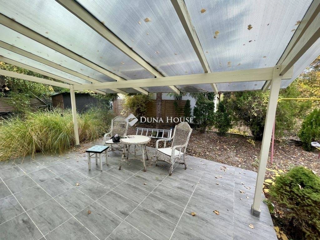 A 20 m²-es fedett terasz kiváló helyszín családi reggelikhez, baráti beszélgetésekhez, a melléképület pedig további praktikus lehetőségeket kínál tárolásra vagy műhelyként.