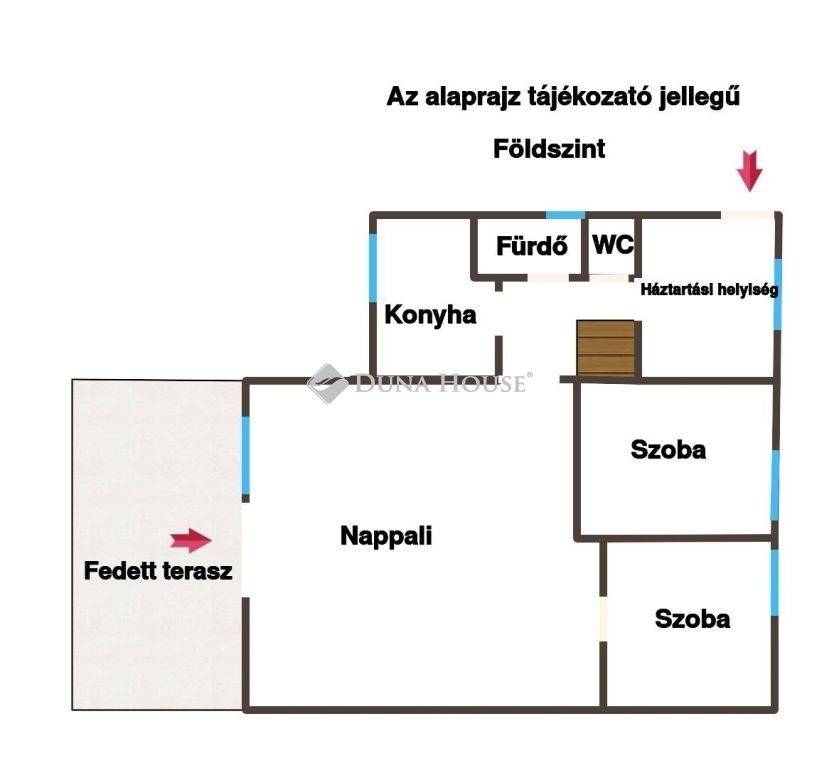A ház elosztása ideális: nappali + 2 szoba + 2 félszoba + háztartási helyiség, konyha, fürdőszoba és külön WC gondoskodik a kényelmes mindennapokról.