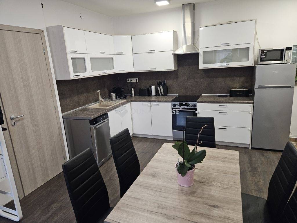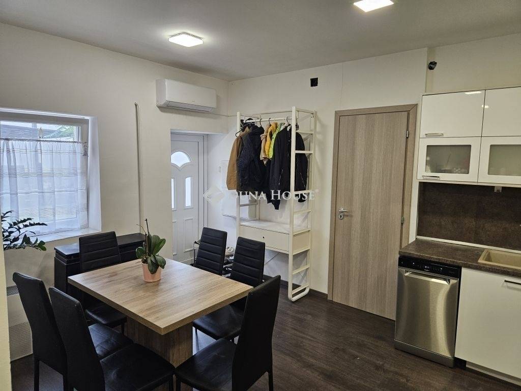 A nagyobbik házrész (kb. 70 m²) otthonos hangulatú, két szobával, világos nappalis konyhával, gáz- és elektromos fűtéssel, valamint klímával, hogy télen-nyáron kényelmes legyen.