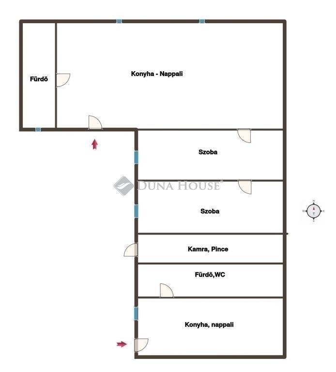 A ház két különálló lakrészből áll, összesen kb. 100 m² hasznos alapterülettel: