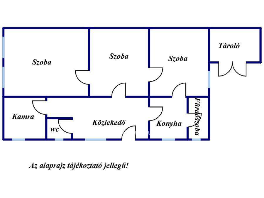 A házban előszoba, három tágas szoba, konyha, kamra, fürdőszoba, wc helyiségek vannak. A szobák szőnyegpadlóval, a többi helyiség pedig járólappal burkolt. Az otthon melegét gázkonvektoros fűtés biztosítja, a melegvíz ellátásról gázbojler gondoskodik.