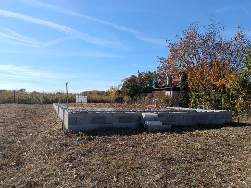 A telken egy br. 90 m2-es, nettó 66 m2-es amerikai nappali-konyhás, egy hálószobás, fürdős nyaralóház alapjai találhatóak.