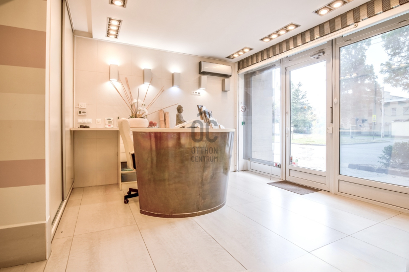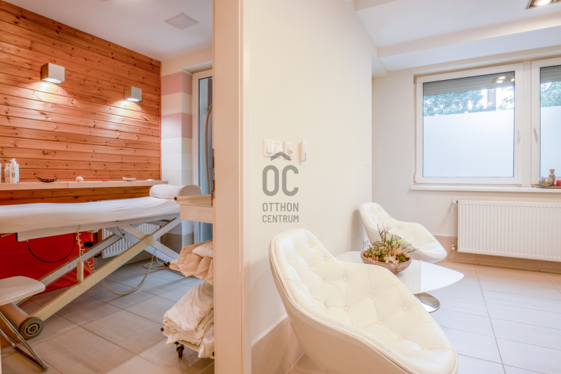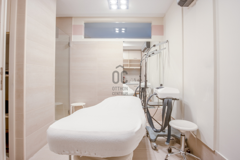 ✅ Felosztása jelenleg: recepció/előtér, teakonyha, öltöző, 3 toalett, közlekedő, 6 kezelő helyiség, szauna, szolárium helyiség, pihenő, terasz.