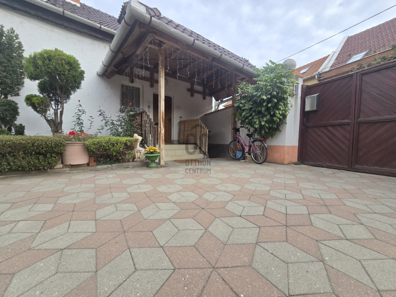 A nyílászárók műanyagok, redőnnyel ellátva, az udvar térkövezett és karbantartott.
