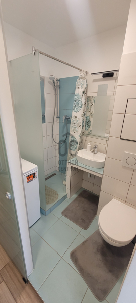Fürdőszoba frissen felújított, zuhanykabinos és egyben fiatalos.