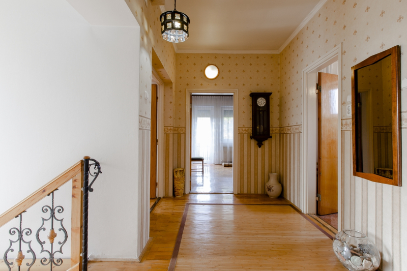 - Földszint: tágas nappali működő rusztikus kandallóval, étkező, konyha, fürdő, külön WC, műhely, garázs és pincelejáró.