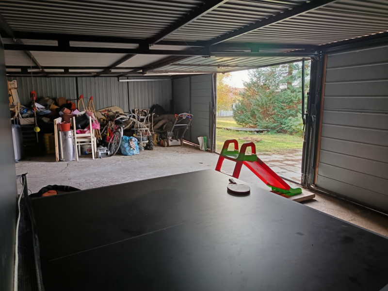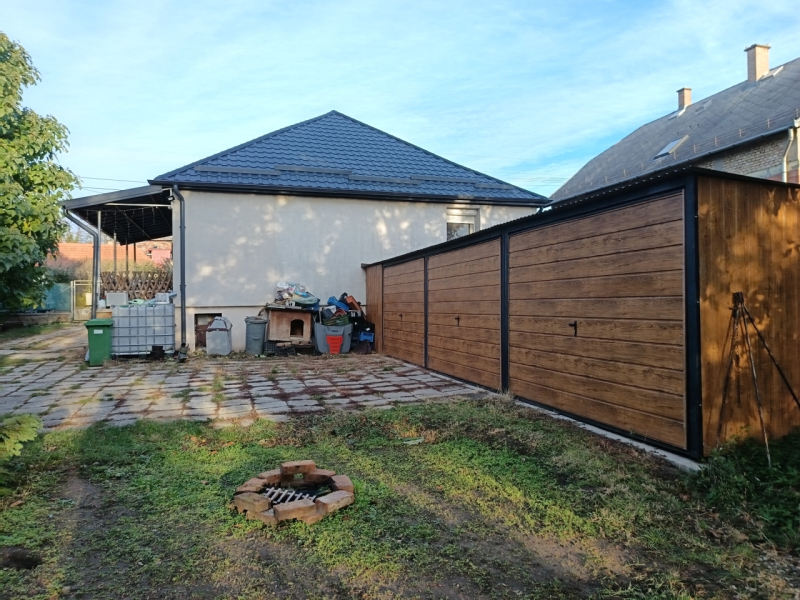 A kertben helyt kapott egy betonalappal rendelkező 3 állásos lemezgarázs is, ahonnan a pince megközelíthető 810 nm nagyságú).