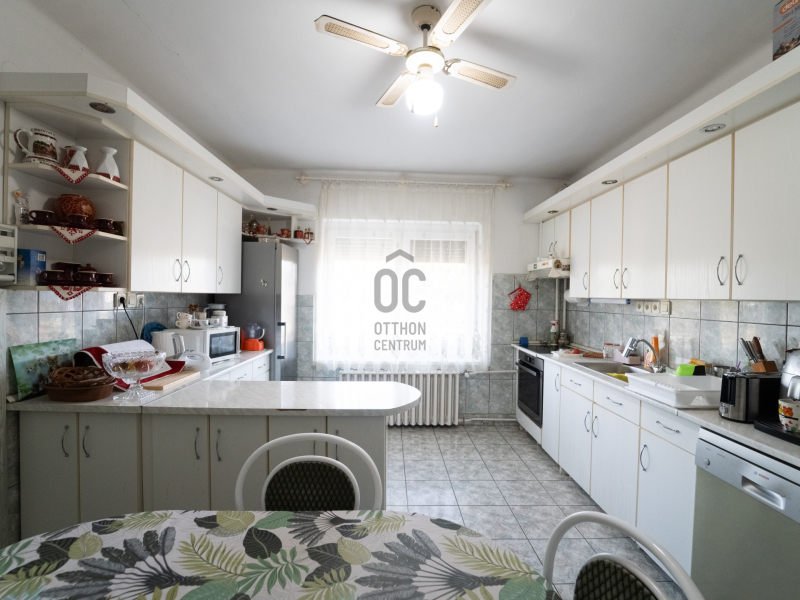 A telek mérete 838 nm, amely lehetőséget biztosít a kert növelésére vagy akár egy kis játszótér kialakítására is. Az ingatlan állapota kiváló, a fűtés gáz (cirko) rendszerrel működik, a klíma pedig a nyári hőségben biztosítja a kellemes hőmérsékletet. Az ingatlanhoz tartozik kettő kényelmes garázs, amely két autó számára kínál helyet, valamint 2 autó beállóhelyet így a parkolás sosem jelenthet problémát. A házban található beépített bútorok és szekrények nemcsak esztétikai szempontból vonzóak, hanem a praktikus tárolást is megkönnyítik. Az amerikai konyha modern dizájnja és funkcionális elrendezése ideális a családi étkezésekhez és baráti összejövetelekhez.