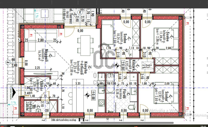 - 93,43 m² nettó lakótér,11,09 m² terasz (2,8 m belmagasság!)