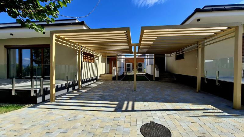 - a házhoz, gépkocsi tárolás céljából, tartozik egy részben fedett pergola, de az épület előtt az utcán, biztonságos körülmények között még 2 autó is parkolhat