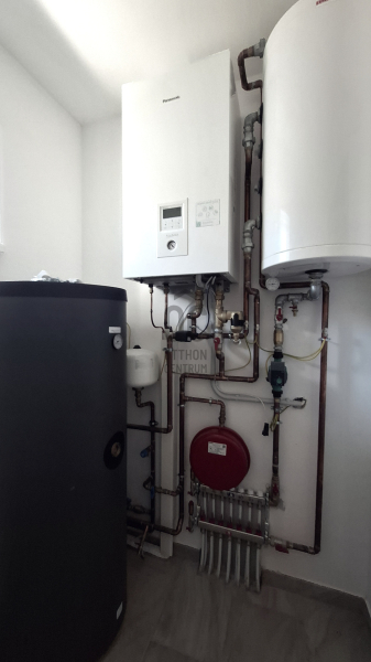 - a rendszerre rá van kötve, egy 200 l-es HMV tartály, mely 4 fő részére folyamatosan biztosítja a meleg víz előállítását és tárolását