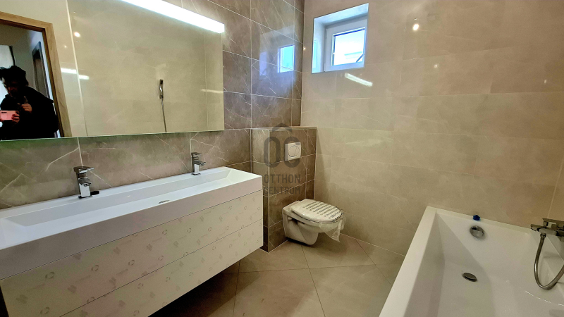 A fürdőszobában kialakításra kerül a kádon, vagy a zuhanyzón és a mosdón felül egy toalett is, de egy külön helyiségben is lesz még egy, a megnövekedett komfort igények miatt!