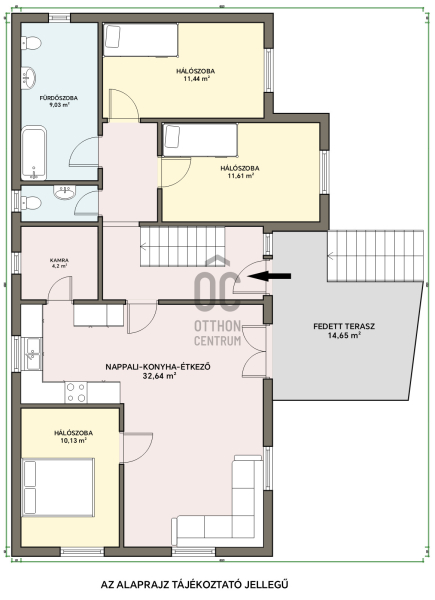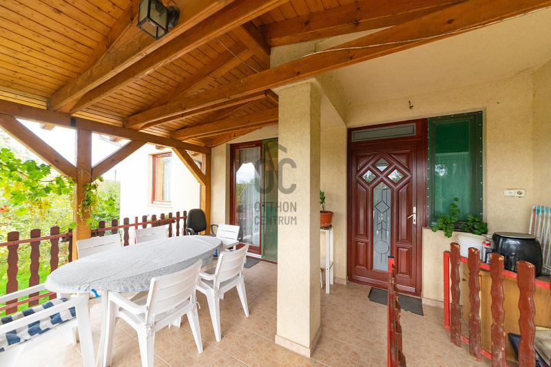 A nappaliból nyílik a ~15m²-es fedett terasz, ami tökéletes helye a reggeli kávénak, vagy a baráti grillezéseknek.