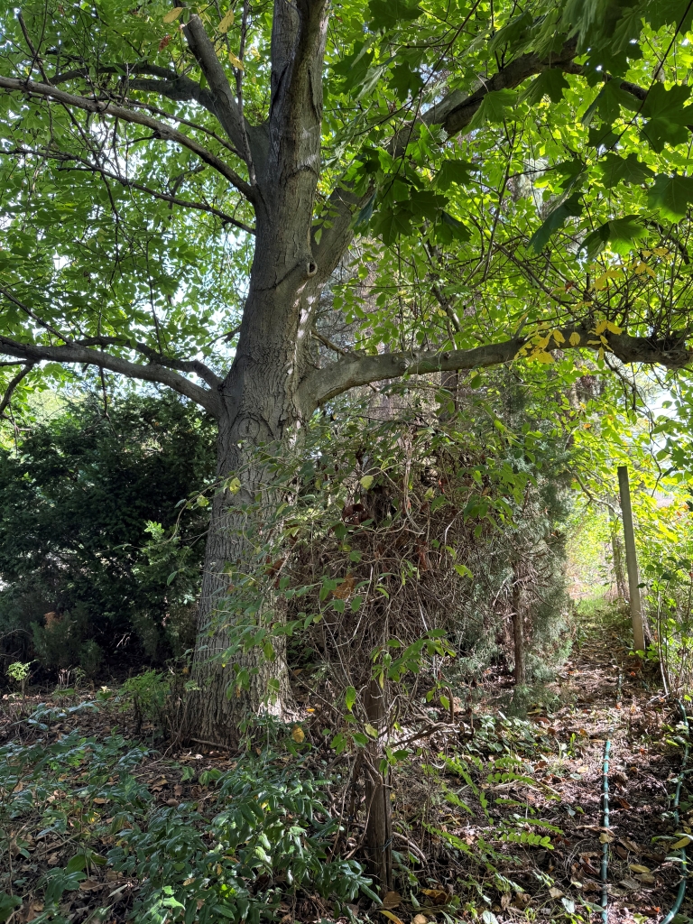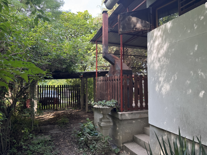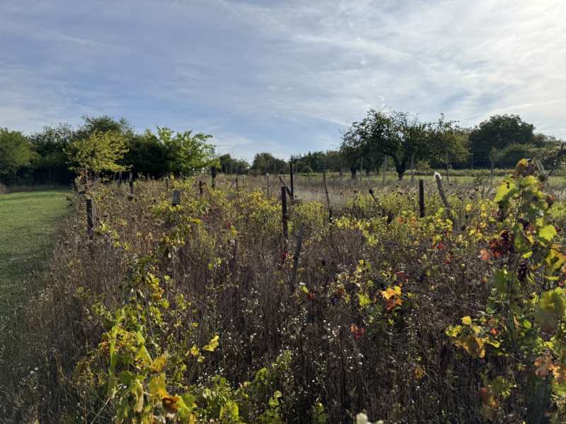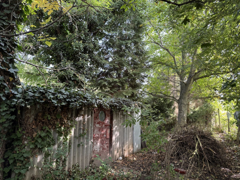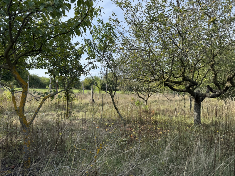 A telek 1430m2, egy része fákkal beültetett, hátsó részében szőlős található.