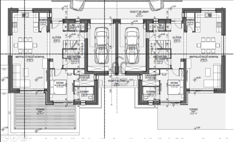 • Saját, galériás garázs (19,9 m² + ~15 m² tároló)